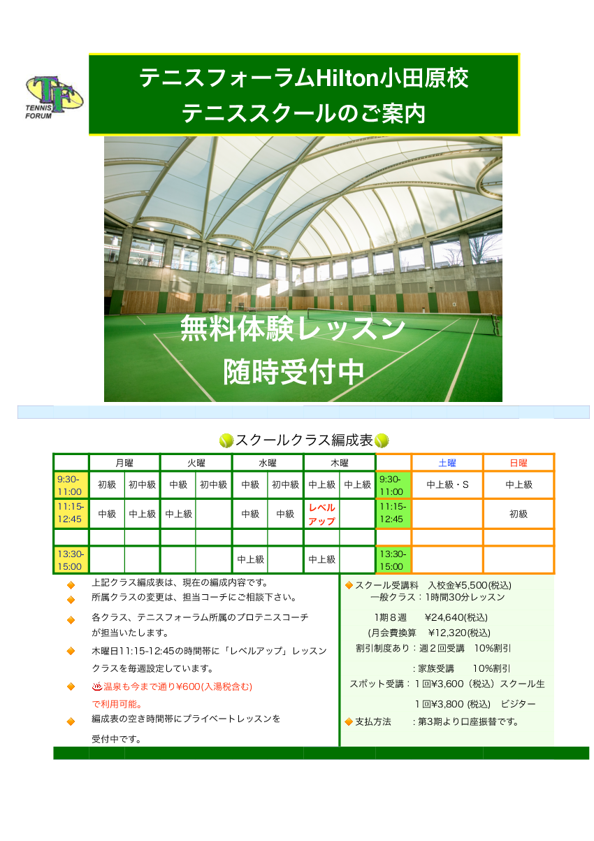 Hilton小田原校 テニススクールパンフレット